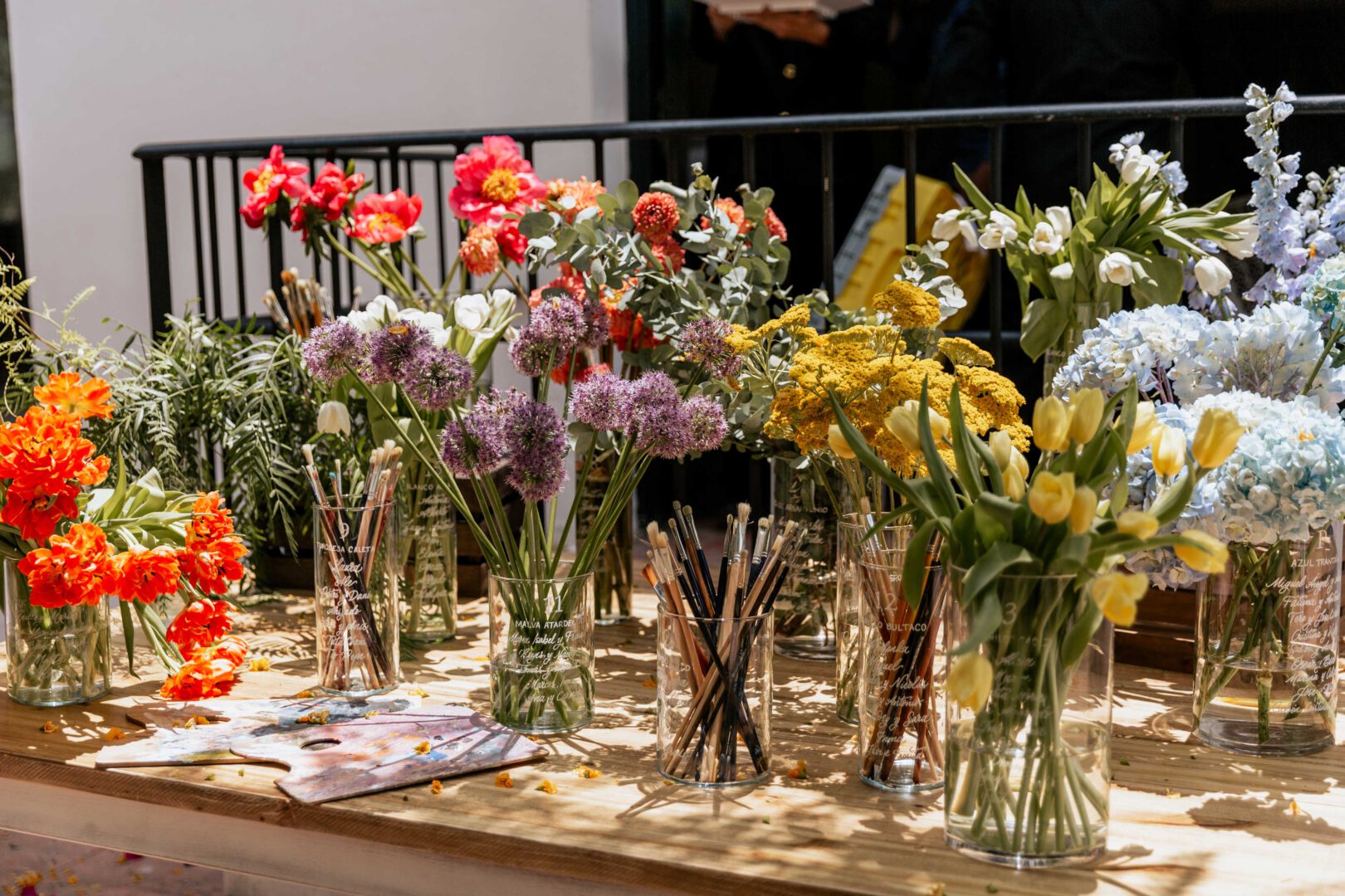 Un montaje bohemio con cordeles, pinzas de madera o cintas de seda. Sencillo, romántico y fácil de adaptar a cualquier estilo floral.