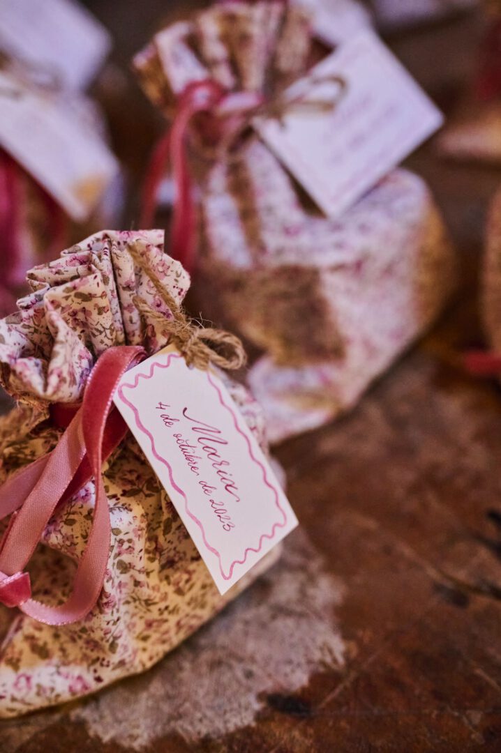 Algunas parejas prefieren que el seating plan se fusione con los regalos de los invitados, de manera que cada persona reciba un objeto con su nombre y mesa asignada.