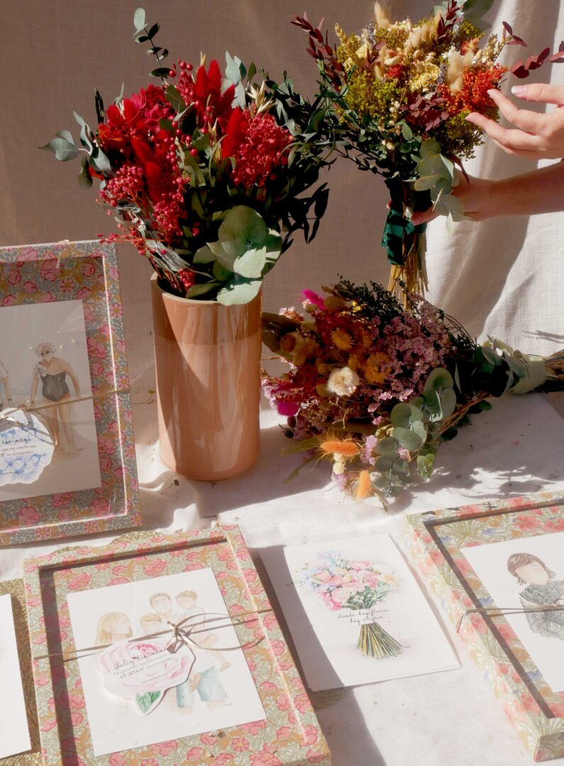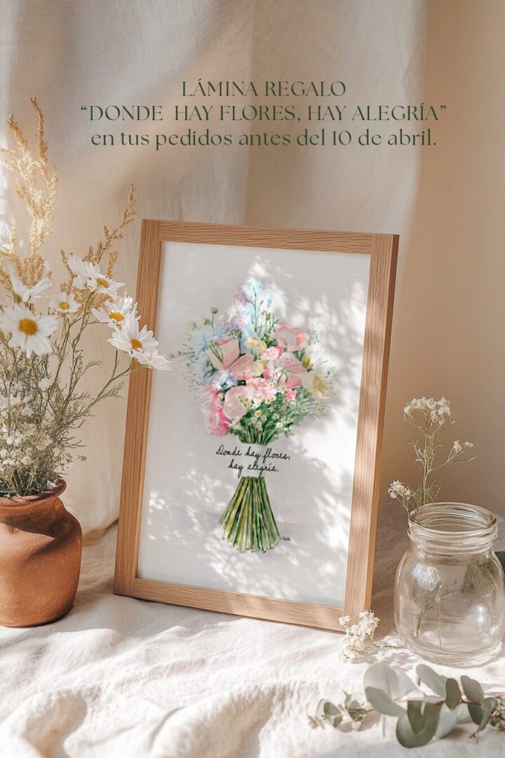 Además, existe la posibilidad de incluir un ramo de flores preservadas pensado para completar la pieza y hacerla más especial.
