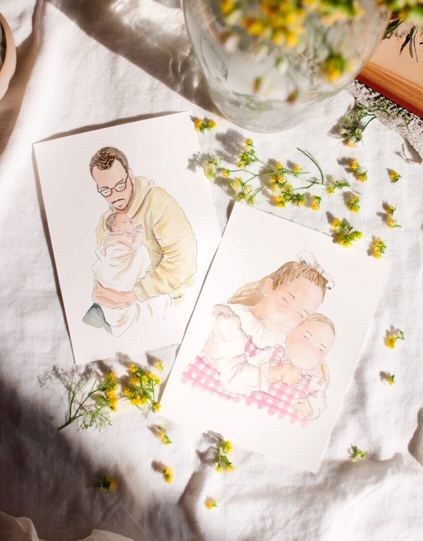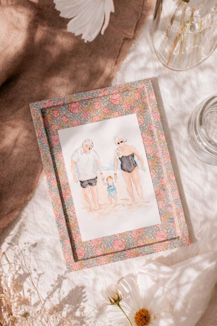 El regalo más bonito que hemos hecho hasta el momento, Trantán x Manselier une una ilustración en acuarela pintada a mano a partir de vuestra fotografía con un cuadro artesanal forrado en tela, realizado cuidadosamente para convertir cada composición en una obra especial y llena de sensibilidad.