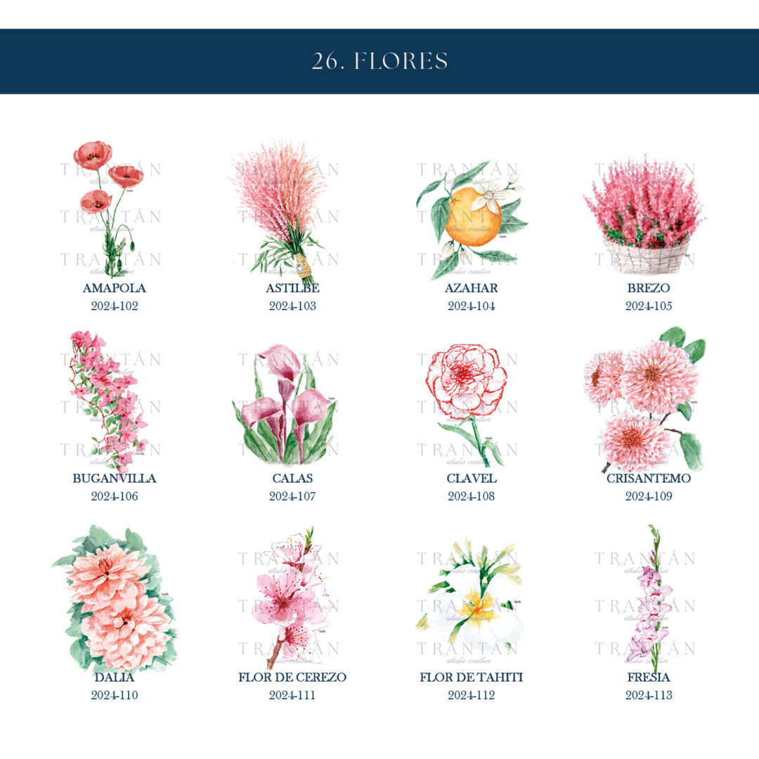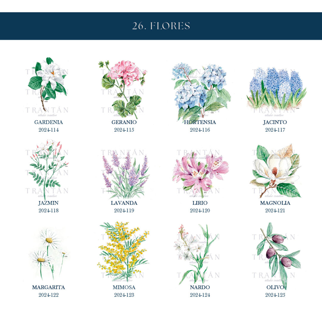Una colección que florece en cada mesa. Inspirada en la belleza natural y el lenguaje sutil de las flores, cada mesero está ilustrado en acuarela con la delicadeza y el mimo que caracterizan a Trantán.