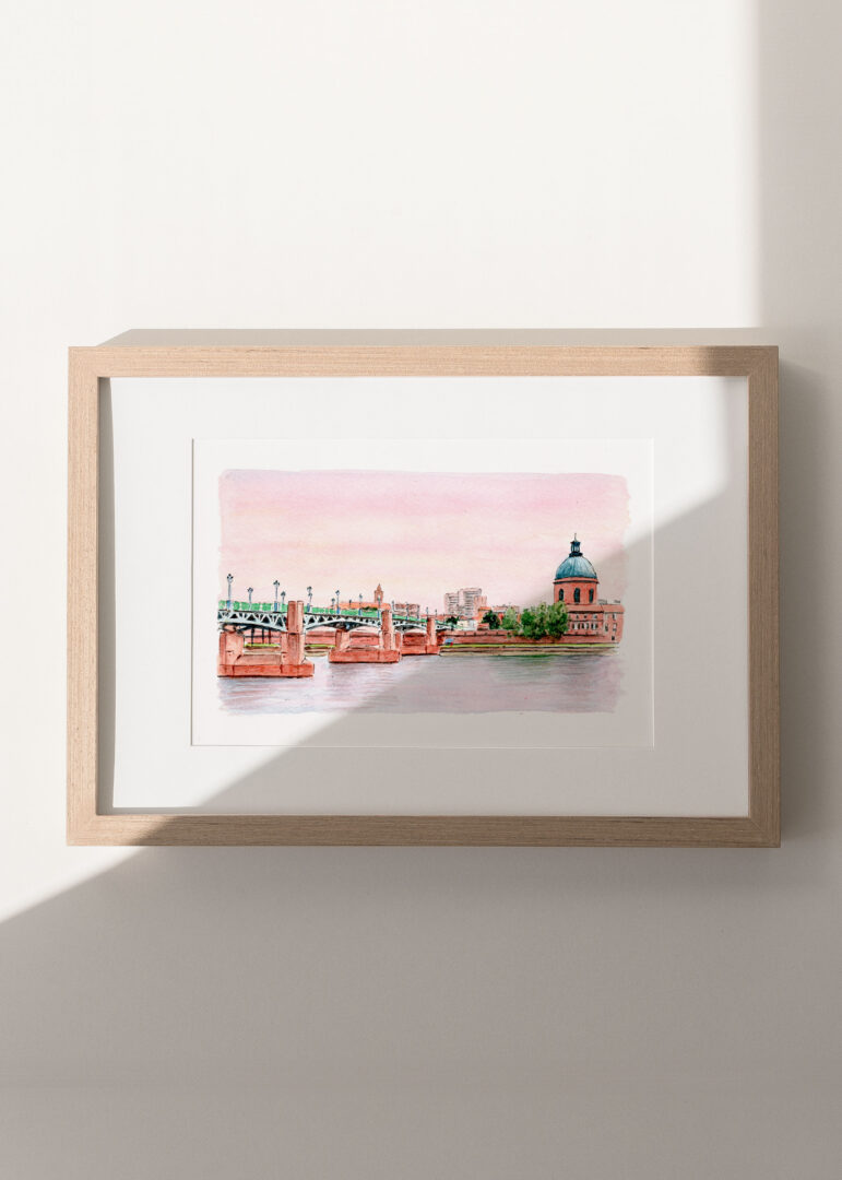 Lámina decorativa de ciudad ilustrada en acuarela, impresa en alta calidad y pensada para aportar calma, personalidad y un estilo atemporal a cualquier espacio. Ideal para decoración de interiores.