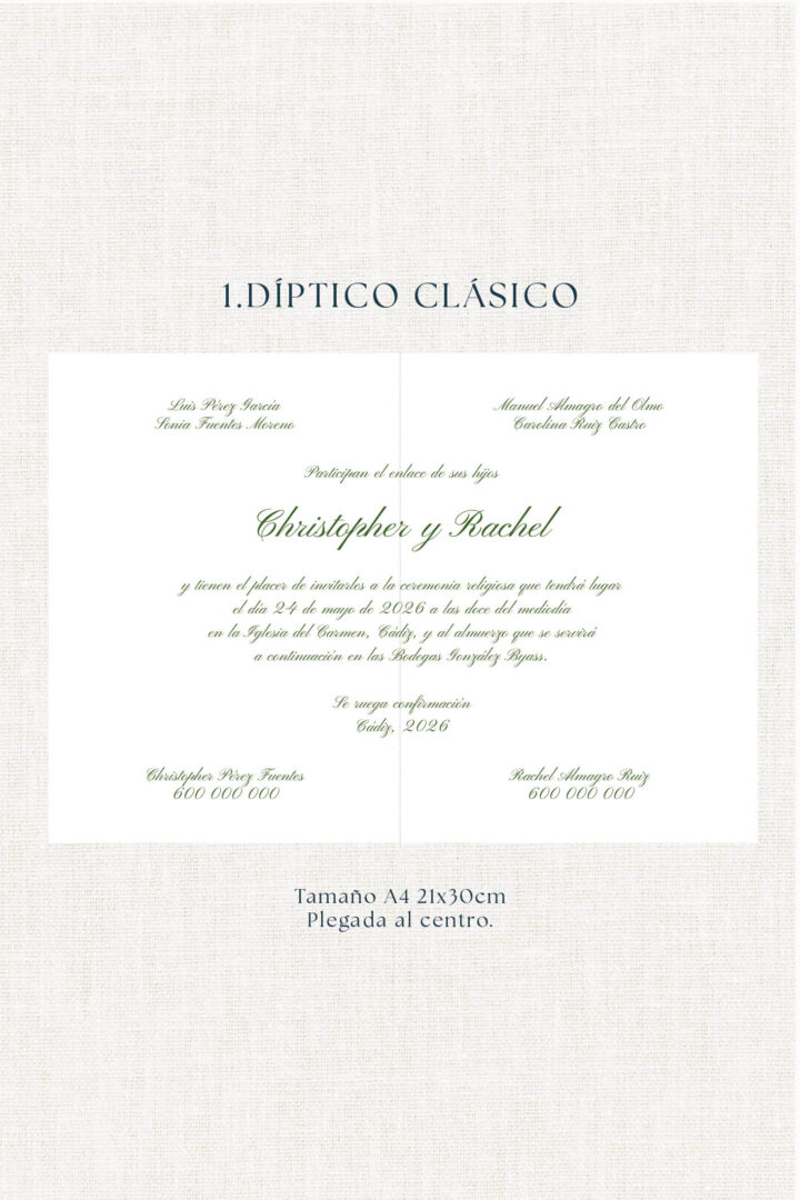 • Tamaño tarjetón A5 (148,5x210mm) y Díptico A4 (297X210mm)