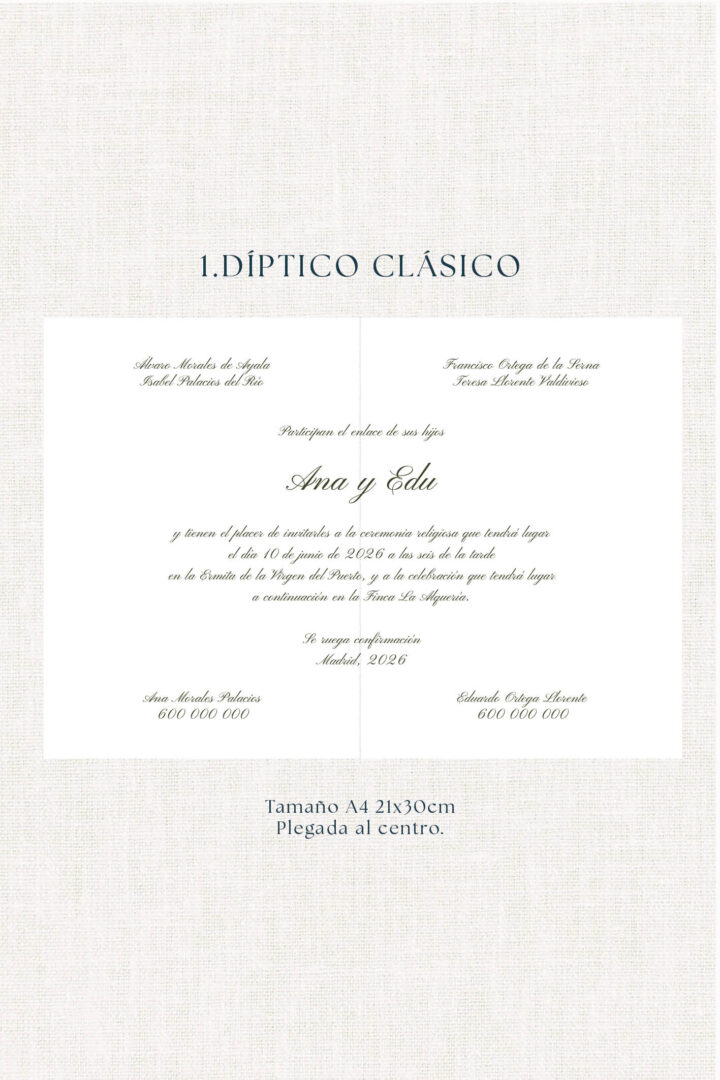• Tamaño tarjetón A5 (148,5x210mm) y Díptico A4 (297X210mm)