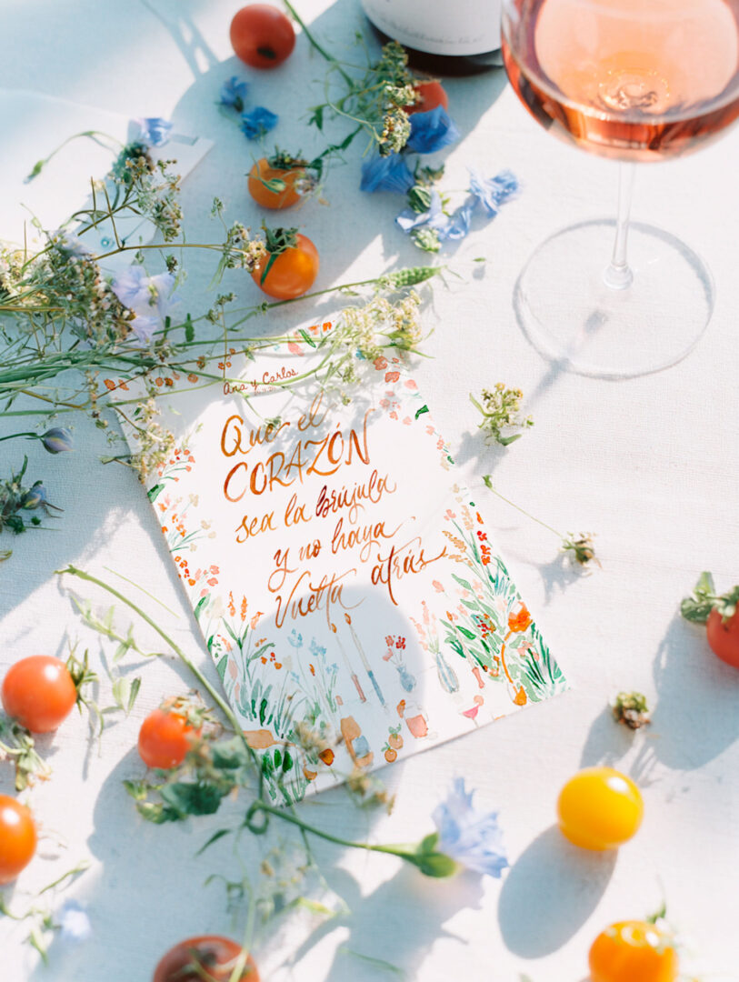 Nos encanta el detalle de dar a los invitados una pequeña lámina con una frase bonita en la que agradecerles por estar ese día ahí. Además, se trata de un regalo que luego podrán utilizar para decorar y de dejar una frase que siempre les recordará a vuestro enlace.