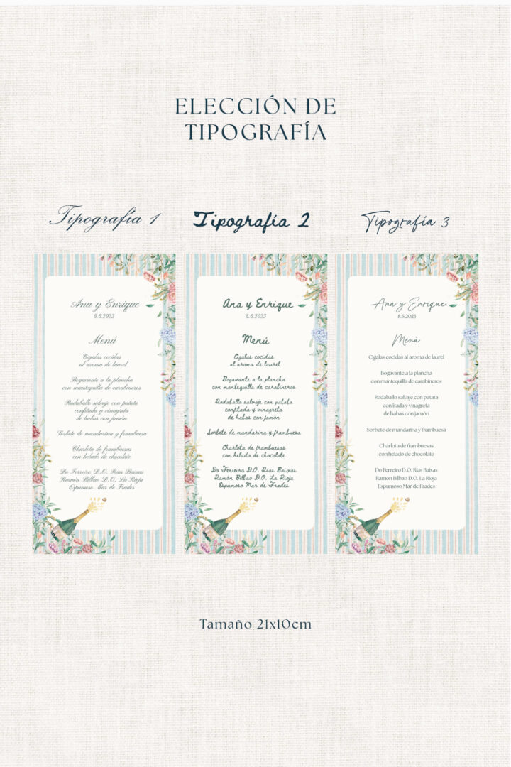 2. Escribe el texto de vuestro menú, también vuestros nombres y fecha de boda.