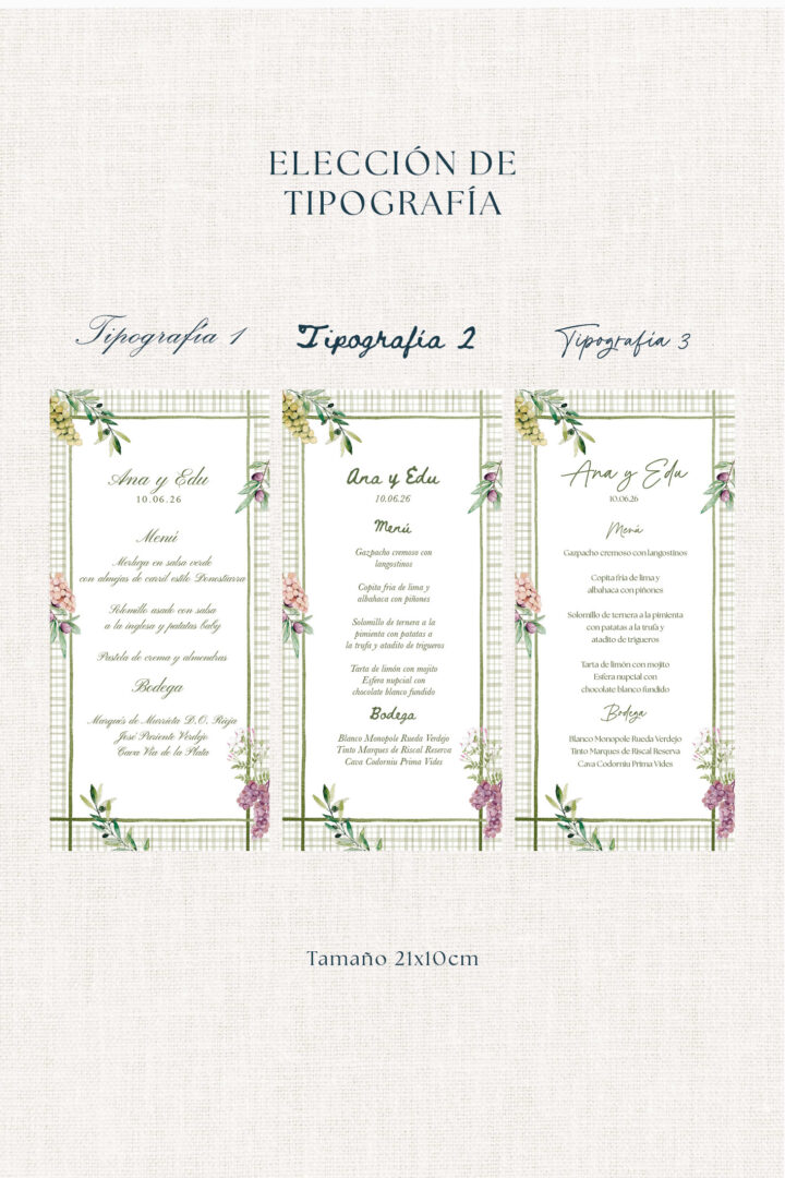 2. Escribe el texto de vuestro menú, también vuestros nombres y fecha de boda.