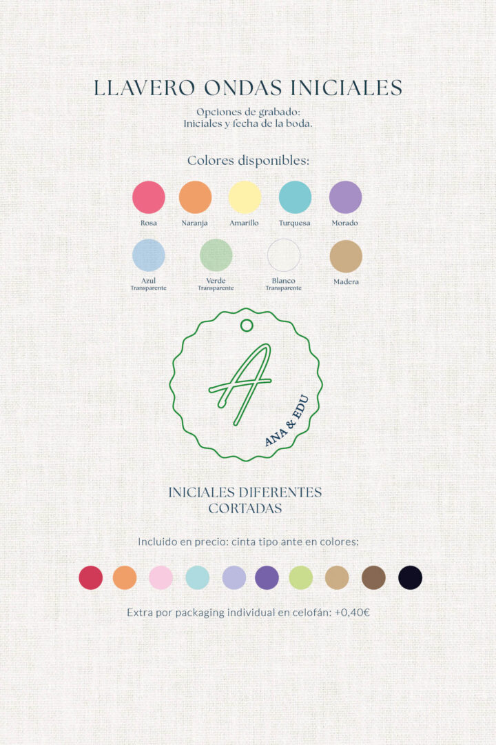 Un detalle que acompaña cada día. Nuestros llaveros personalizados son un recuerdo práctico y bonito para vuestros invitados: una pieza que no se queda en un cajón, sino que viaja con ellos.