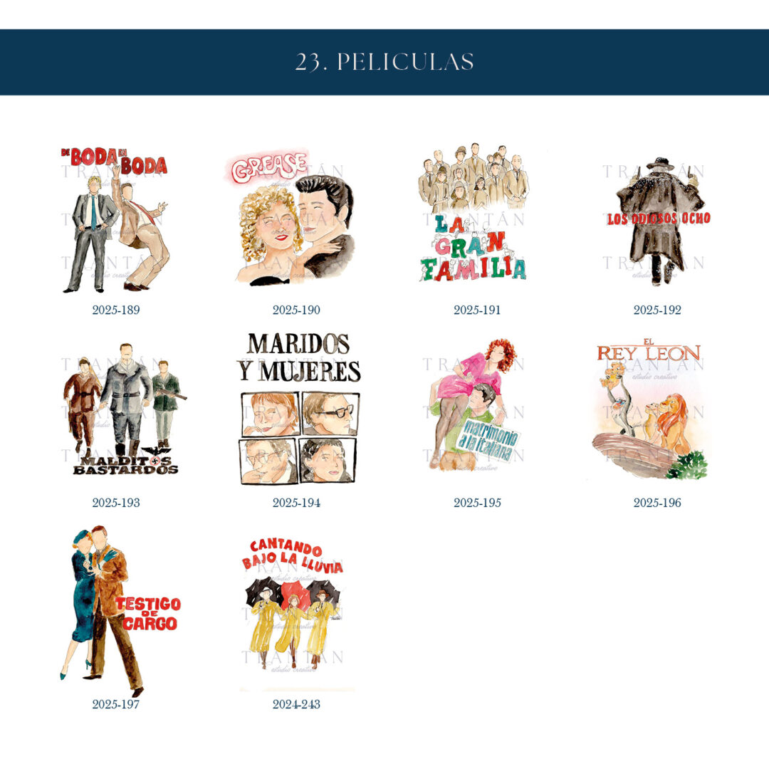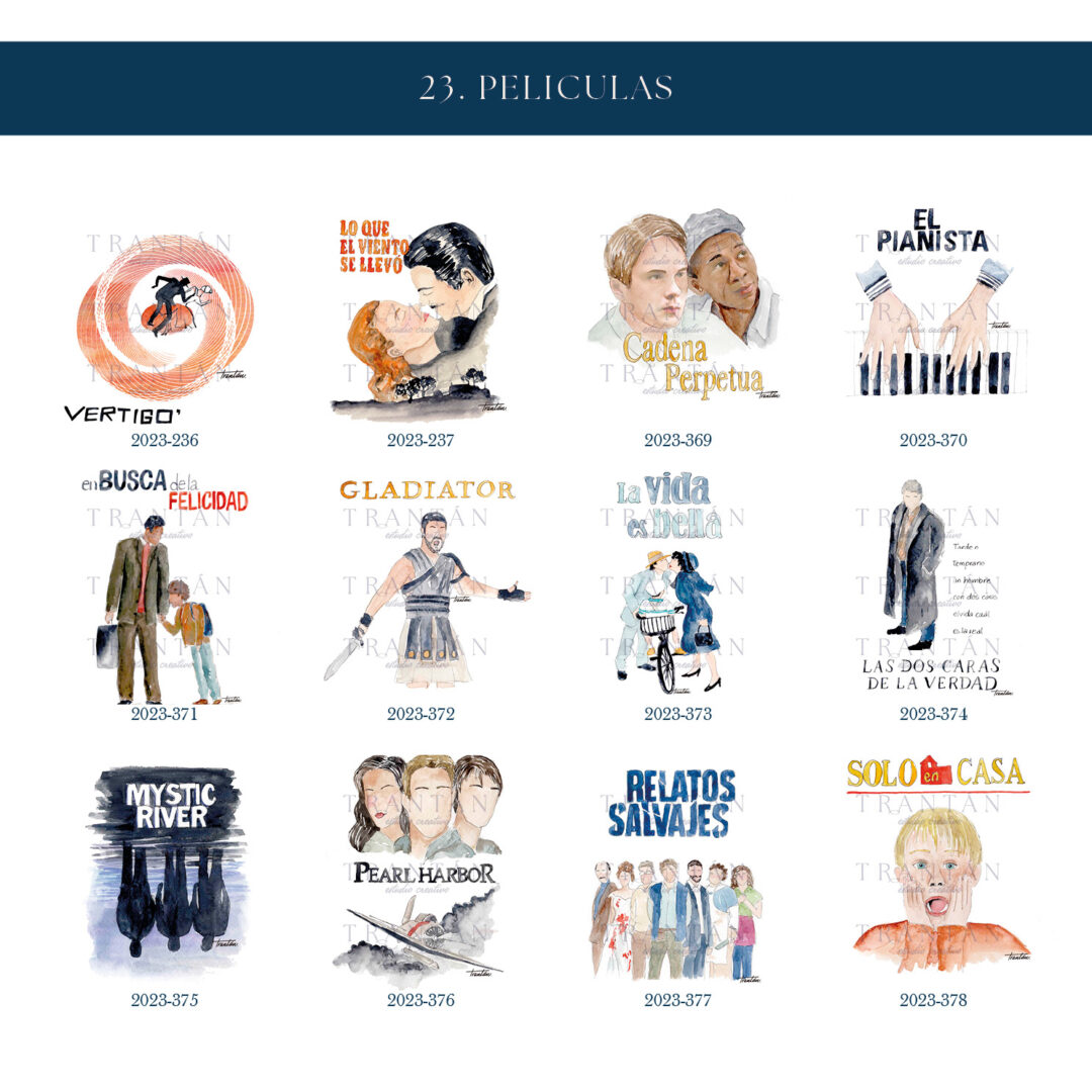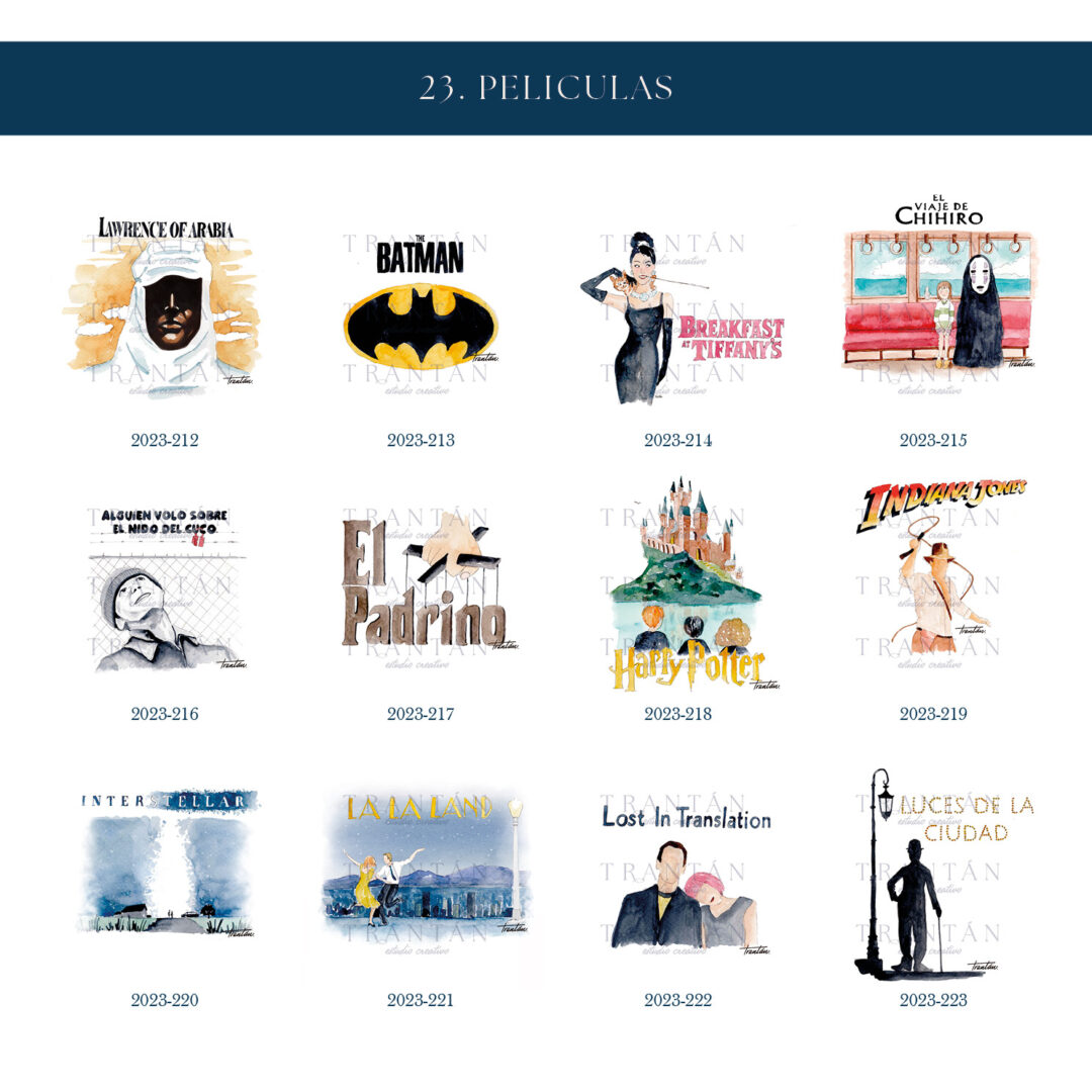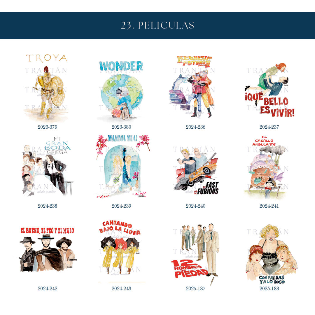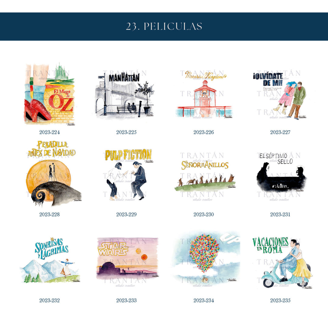 Una colección para los que viven su historia como una gran película. Inspirada en los títulos más icónicos del cine, cada mesero está ilustrado en acuarela con un guiño artístico y nostálgico a la gran pantalla.