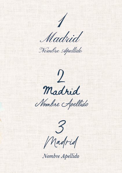 3. Maquetación: Tras realizar la compra, procederemos a la maquetación de las mesas. Os enviaremos una primera propuesta por mail en pdf para que podáis revisar todos los textos. Podréis solicitar las modificaciones necesarias antes de imprimir respondiendo a nuestro mail. Es importante que nos comuniquéis todos los cambios en el mismo mensaje ya que solo habrá una ronda de modificaciones. 4. Aprobación y Envío: Una vez aprobéis el diseño, lo enviaremos a imprenta.